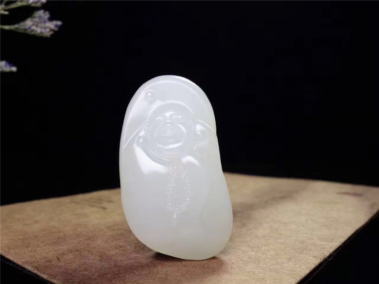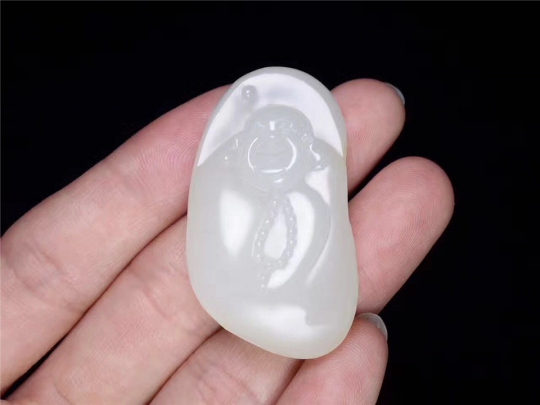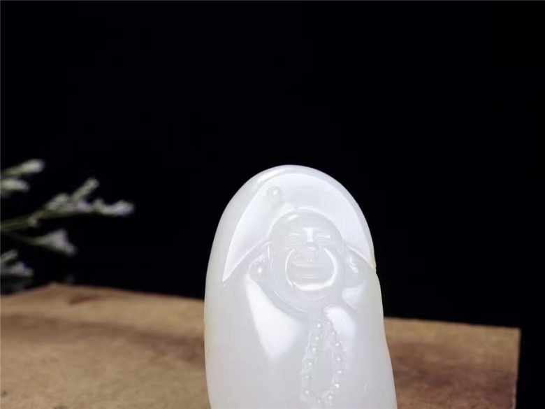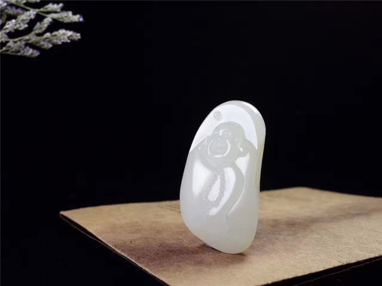 【樂佛】新疆和田玉籽料,玉質熟糯白皙,細膩油潤,毛孔清晰自然。彌勒,和諧喜慶,笑逐顏開,眼神靈動,仿若有靈,刻畫生動傳神。佩戴平安康寧、富貴如意!19.5g 42/23/12mm