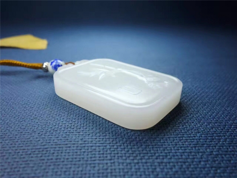 【竹】和田玉山料,玉質(zhì)白皙,上手溫潤,光澤內(nèi)斂,結(jié)構(gòu)均勻緊致。牌面浮雕竹節(jié),精致細(xì)巧。刀法細(xì)致,自然傳神。竹子節(jié)節(jié)高的生長規(guī)律,意為步步高升。竹枝繁葉茂、一節(jié)比一節(jié)高的特點寓意著學(xué)業(yè)有成、節(jié)節(jié)向上。 35g 51*34*9mm