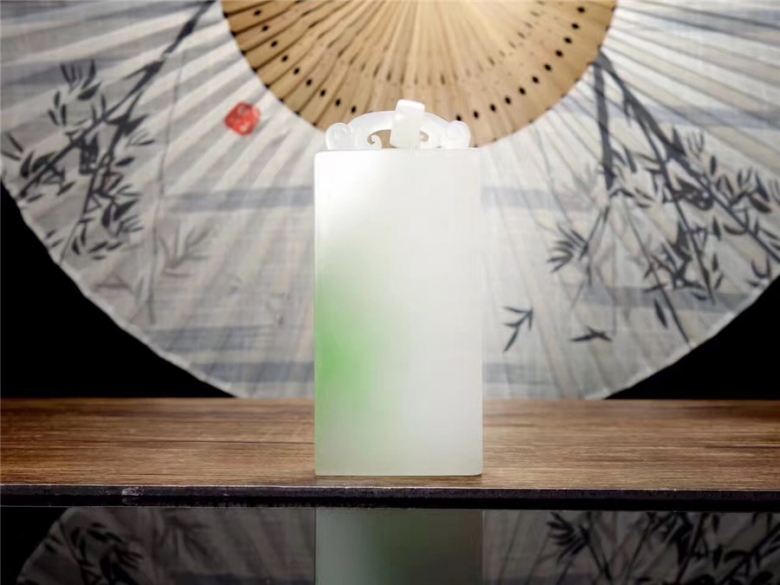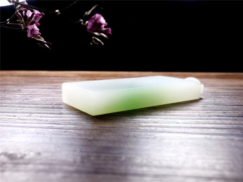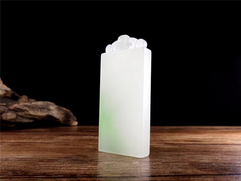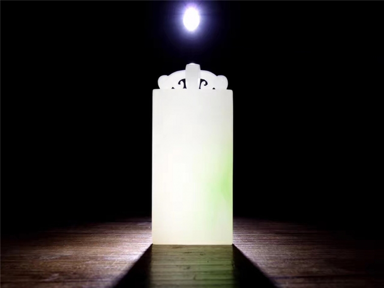 【平安無事牌】和田玉翠青料,白度一級,玉質(zhì)油潤細(xì)膩,翠 色清新淡雅,給人一種舒適的感覺,自成一番意境。牌頭精雕鏤空圓環(huán),線條柔美,一派祥和 之氣。牌面沒有任何雕琢,顧名無字牌,通常也稱無事牌,寓意平安無事,祈福安康。47g 98×30×6mm
