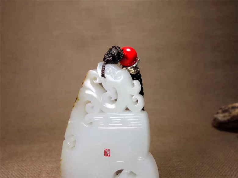 【龍鳳呈祥】新疆和田玉籽料,龍起九州生瑞氣,鳳隨云彩舞風(fēng)華。呈臨福地花如錦,祥賜佳緣好夢(mèng)賒。和田玉山料,玉質(zhì)細(xì)膩油潤(rùn),鏤空雕刻仿古龍鳳,升龍,張口旋身;翔鳳,展翅翹尾。龍飛鳳舞,祥云翻騰,一派喜慶祥和之氣。43g 68/43/10mm