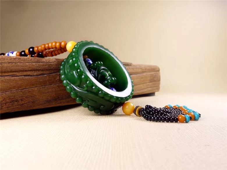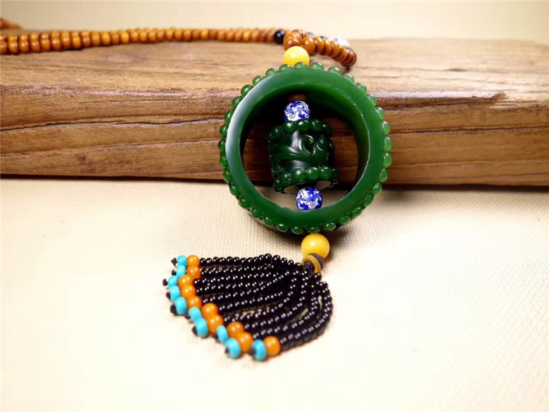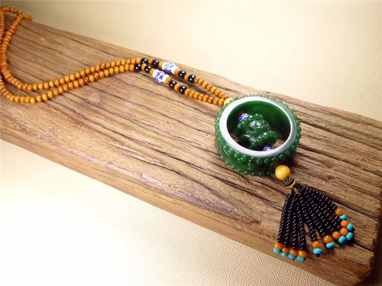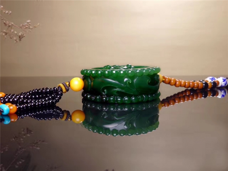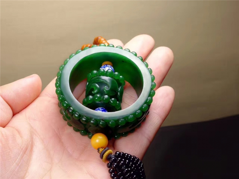 【時來運轉(zhuǎn)】 和田玉老坑碧玉,滿綠,玉質(zhì)細膩,油潤性十足,款型新穎,設(shè)計獨到,佩戴精美!60g 直徑48mm 厚19mm