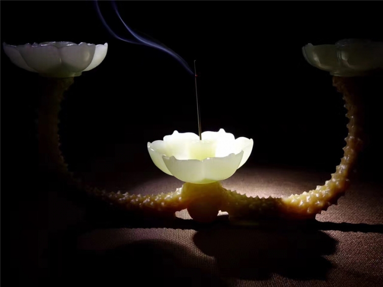 【荷花香插】和田玉糖白玉,玉質(zhì)溫潤(rùn),油潤(rùn)度佳,品相完美,純手工雕刻,精雕細(xì)琢,一捧蓮花開,焚一盞清香,香氣幽馥,修身養(yǎng)性,放置桌案別有一番雅趣……257.5g 110/200/60mm