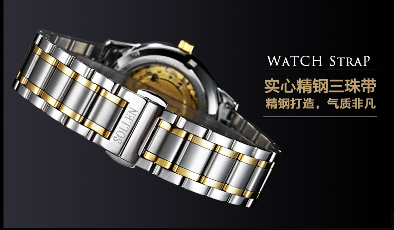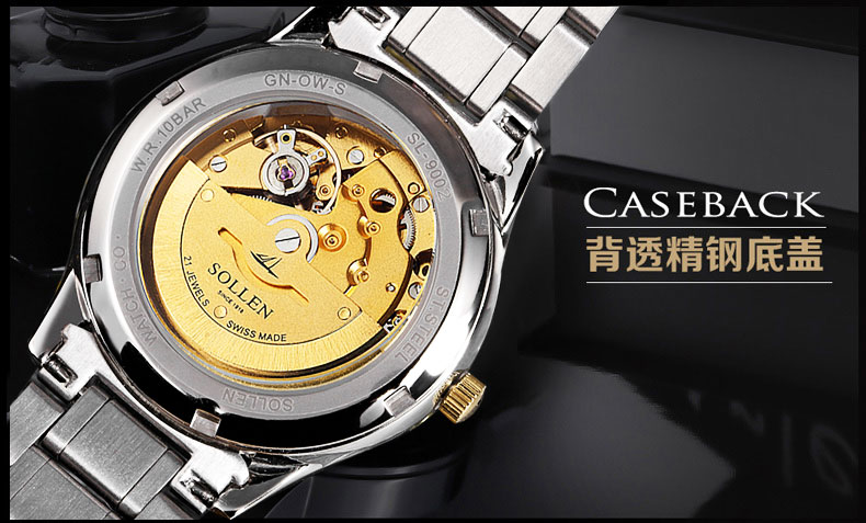 表殼材質(zhì):鋼 表帶材質(zhì):鋼 電鍍質(zhì)量:無電渡 機芯:南寧2813 防水:5ATM 底蓋:透底 表扣:蝴蝶扣