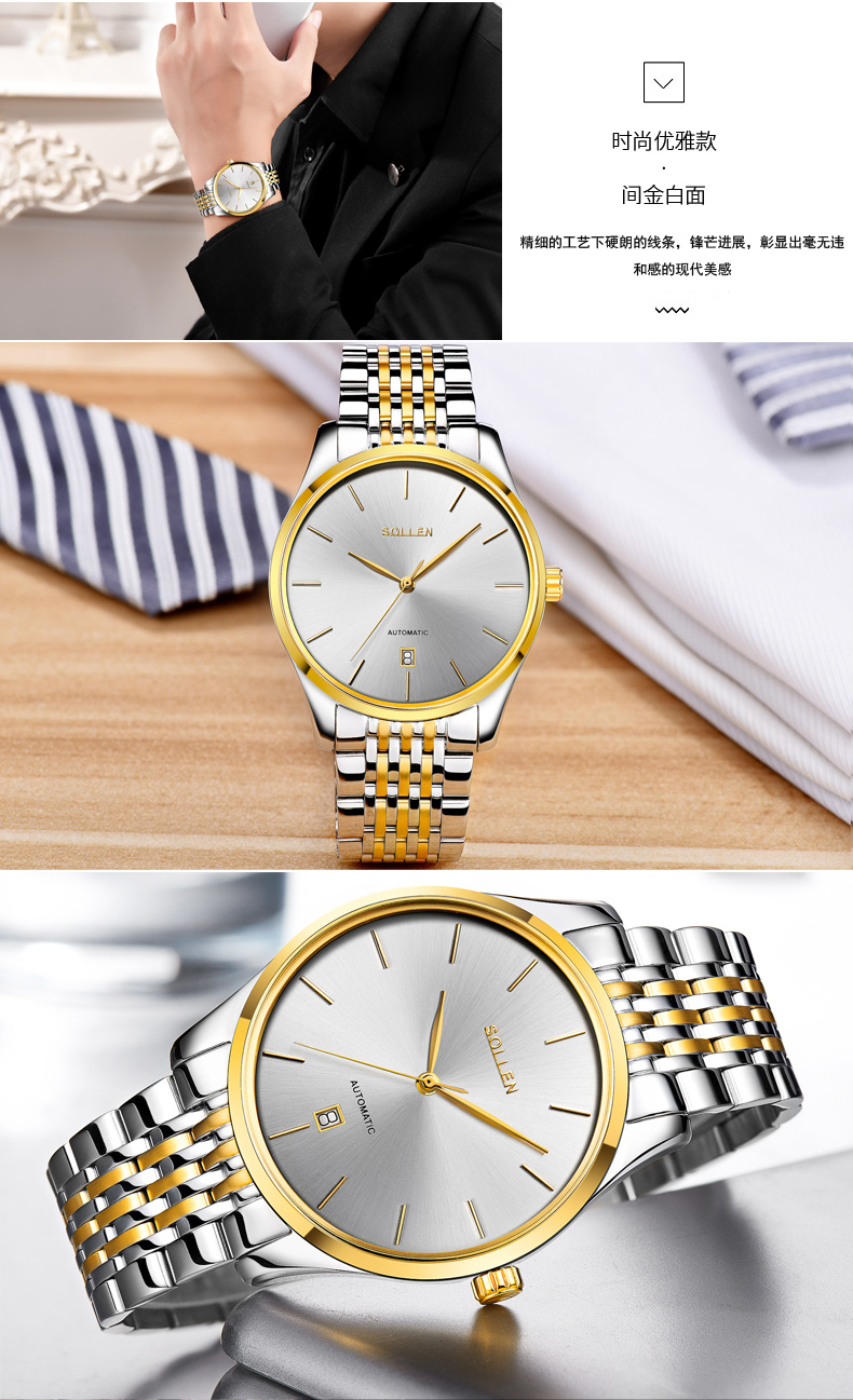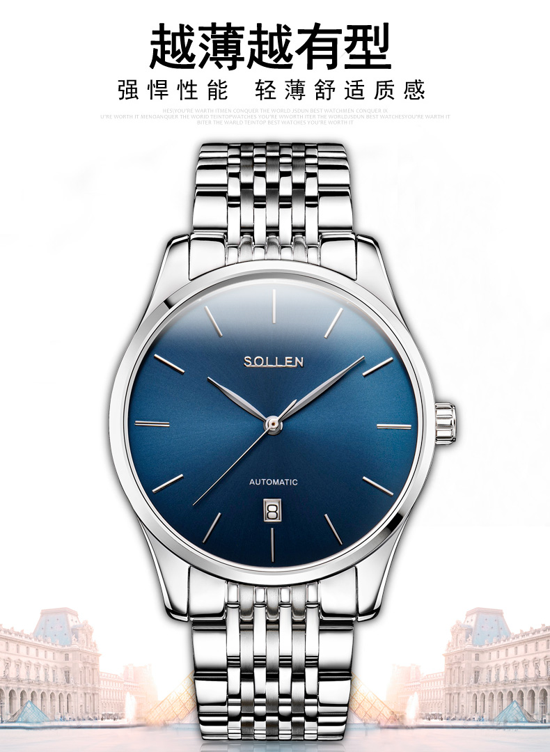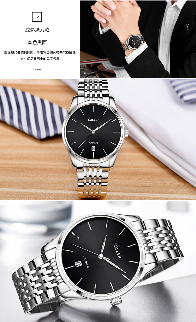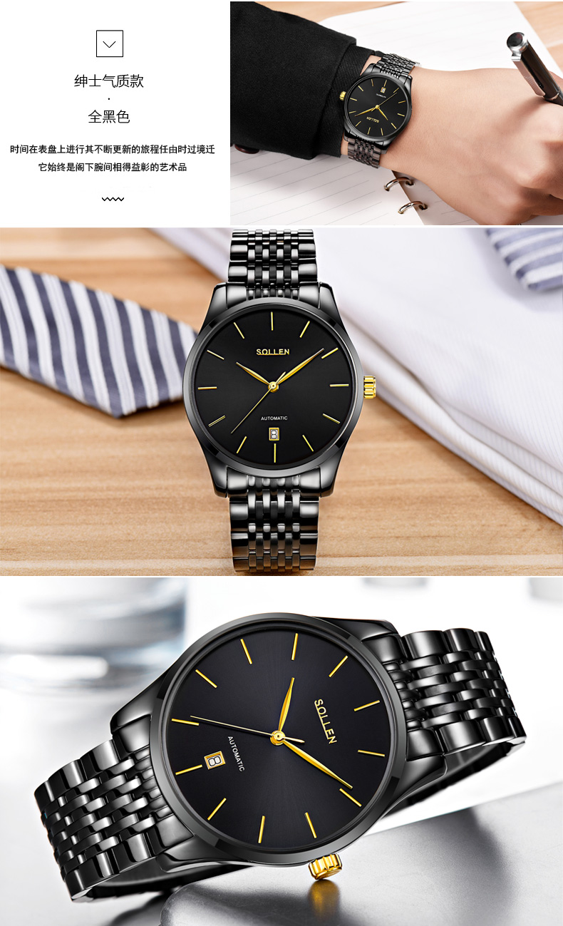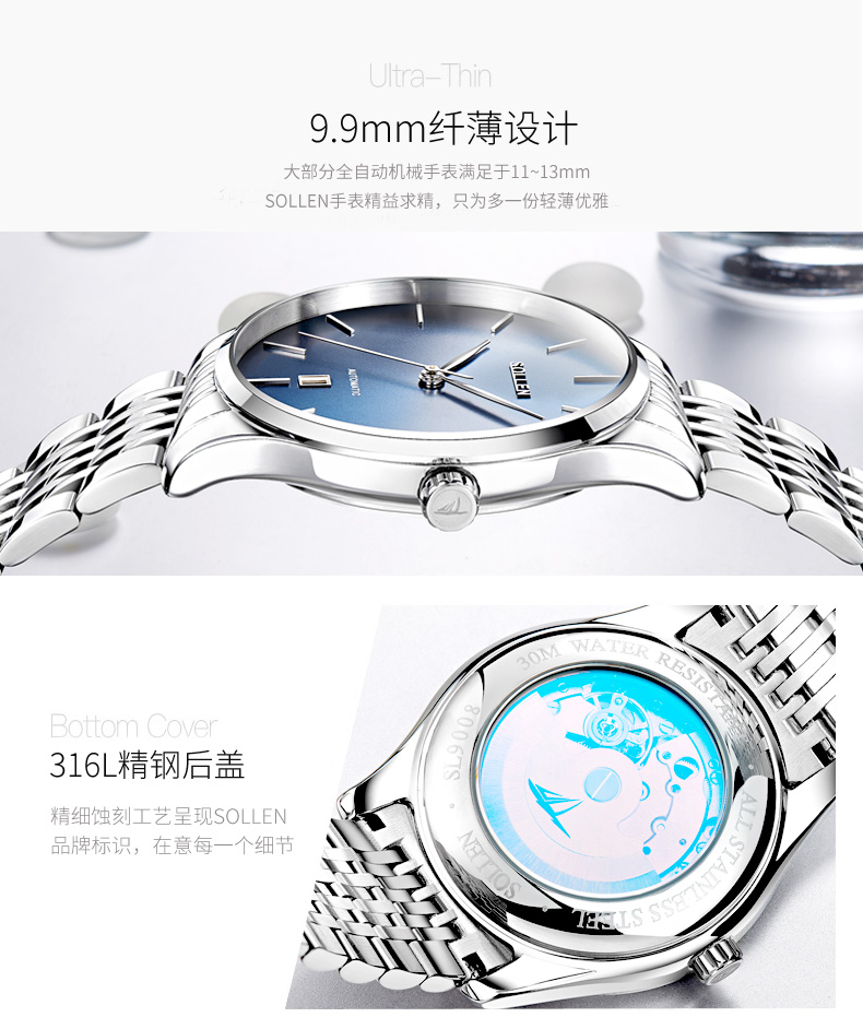 表殼材質(zhì):316L精鋼 表帶材質(zhì):316L精鋼 電鍍質(zhì)量:無 機(jī)芯:機(jī)械= 手表顏色:黑色 防水:3ATM 扣子:蝴蝶扣 底蓋:透底