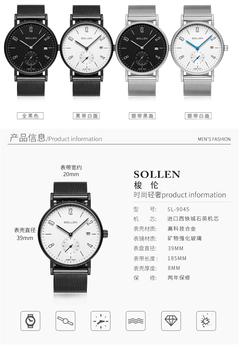 表殼材質(zhì):鋅合金 表帶材質(zhì):不銹鋼 電鍍質(zhì)量:無(wú) 機(jī)芯:西鐵城 手表顏色:銀色 防水:3ATM 扣子:折疊扣 底蓋:啤底